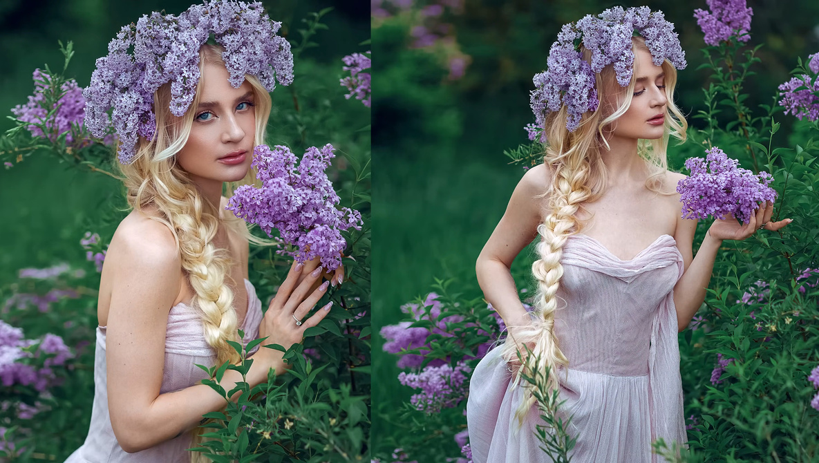 Rudnyk takes the easy thought of a hand-crafted lilac crown, a pastel robe, and a cloudy day and turns it right into a cohesive visible story. The moody climate provides depth to the colours, giving her smooth purple tones a dreamy high quality. She retains issues fluid, transferring her mannequin by way of the placement till each body feels balanced. Her course of is calm, targeted, and improvisational. You see her take a look at completely different angles, swap between lenses, and reply to the sunshine in actual time. That type of adaptability is what transforms on a regular basis areas into robust portrait settings. Watching her work seems like a reminder that images rewards commentary greater than tools.